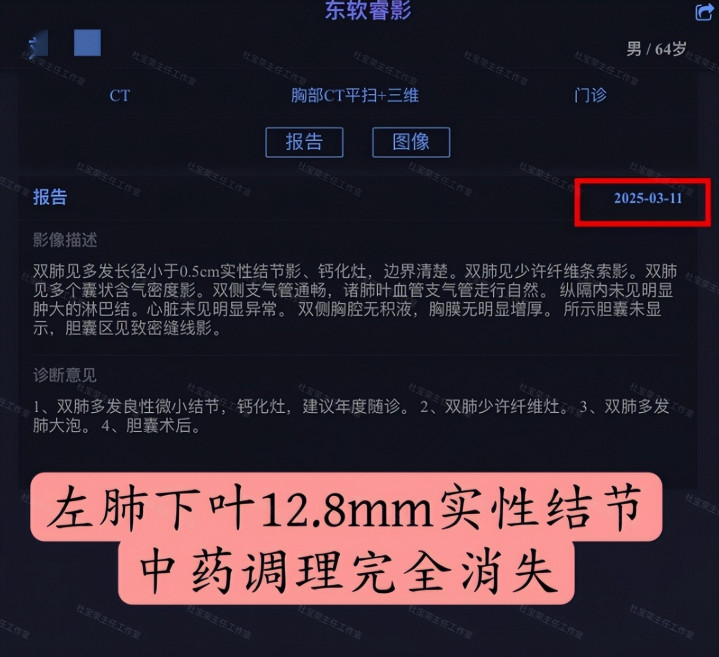 - 12mm实性结节从发现到消失, 仅用3个月。这